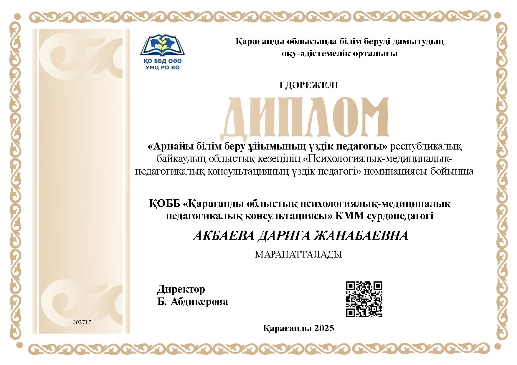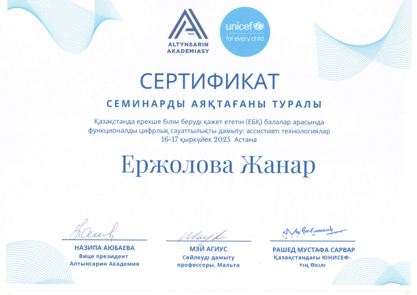 Басшы, жоғары санатты логопед-мұғалім, шебер мұғалім